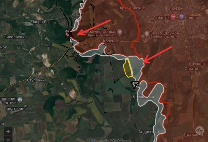 На ЧасовЯрском - в районе между Ивановским и Богдановкой через лес (заказник Ступки-Голубовские-2) ВС РФ перешли канал Северский Донец-Донбасс. Бои идут на окраинах микрорайона «Новый». Продвижение российских войск на участке шириной до 900 метров на глубину до 700 метров.