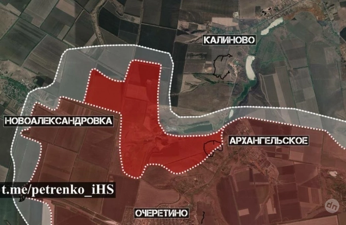 Севернее наши выравнивают фронт - взяли под контроль зону около 5 кв.км между Новоалександровкой и Архангельским. Об этом в своем Telegram-канале сообщает Олег Царев.