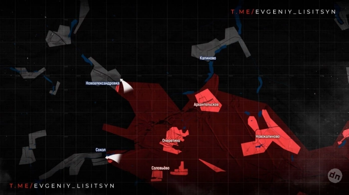 В Новоалександровке продвижение интенсивнее, каждый день российские войска улучшают позиции. К Калиново наши двигаются тоже с двух сторон - от Архангельского и от Новоалександровки.