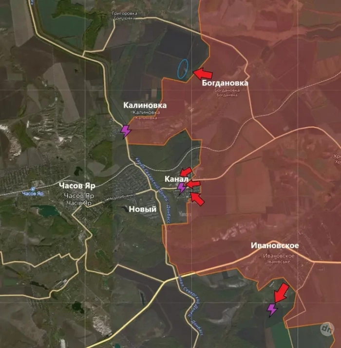 На Часовоярскоv направлении ВС РФ продвигаются в восточном пригороде Часов Яра по направлению к каналу Северский Донец-Донбасс, есть продвижения. Центральная часть микрорайона уже находится под контролем российских войск. Также, есть продвижения в районе Ивановского, где продолжаются бои за высоты, передает Telegram-канал Wargonzo.