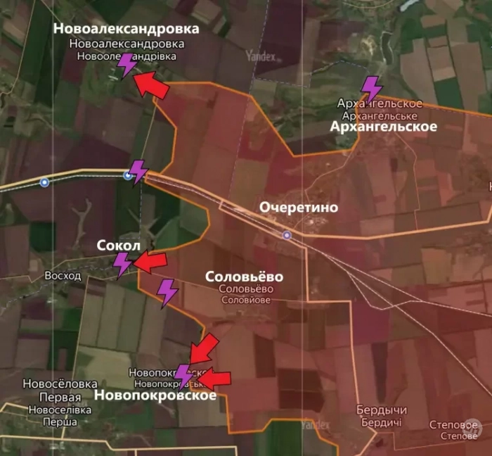 Армия России давит противника в районе Новопокровского. Наши бойцы наступают с северо-востока и востока.