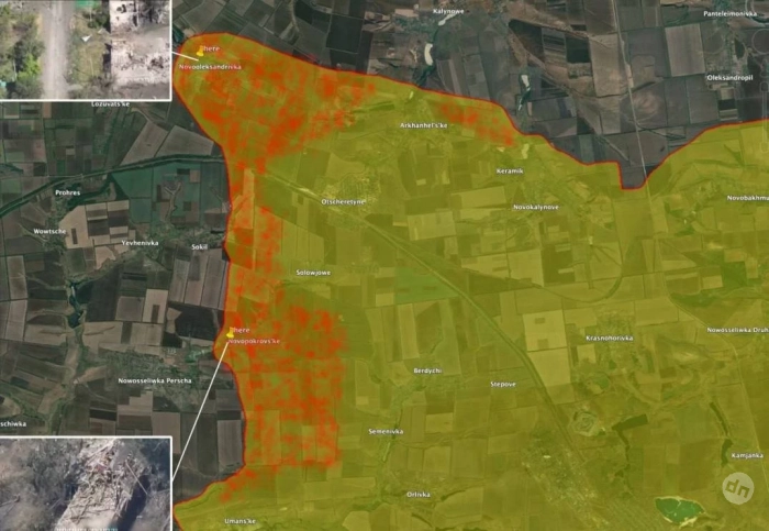 Постепенно идет продвижение от Новопокровского к Новоселовке Первой. Враг выложил кадры поражения нашей бронегруппы при помощи артиллерии и беспилотников, так что как минимум одна атака была сорвана.
