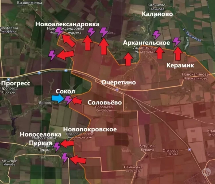 Севернее Архангельского и Керамика также идут бои. Подразделениям ВС РФ удалось немного расширить зону контроля.