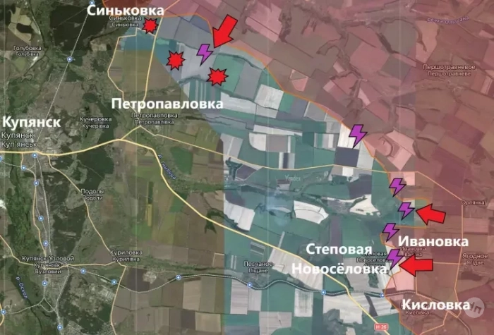 В восточной части продолжаются бои у Степовой Новосёловки, Ивановки и позиций чуть севернее.