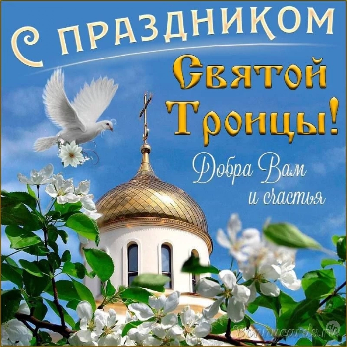 Поздравляю с праздником святой Троицы! Желаю, чтобы небесные Хранители всегда были за спиной. Чтобы горести, печали и невзгоды рассеялись и уступили место миру, радости и покою. Пусть вера в лучшее вместе со свежим летним воздухом поселится в вашем доме. Добра вам и благополучия!