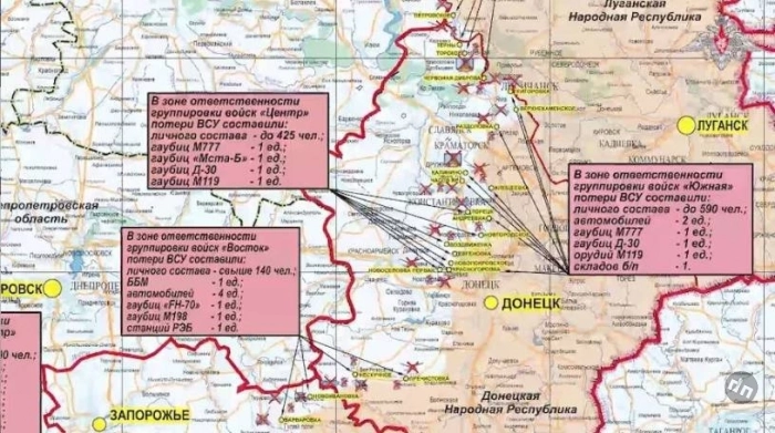 В МО РФ указали на потери украинской стороны в размере более 140 военнослужащих. Кроме того, ВСУ потеряли Senator, четыре автомобиля, гаубицы FH-70 британского производства и М198 американского производства, а также станцию радиоэлектронной борьбы «Буковель-AD».