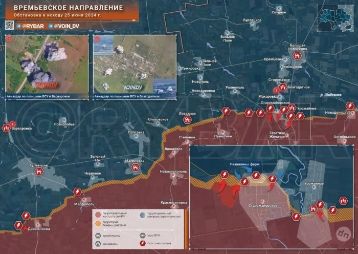 На Времьевском направлении ВС РФ отбили за сутки несколько контратак противника и подтянули фланг западнее Старомайорского.