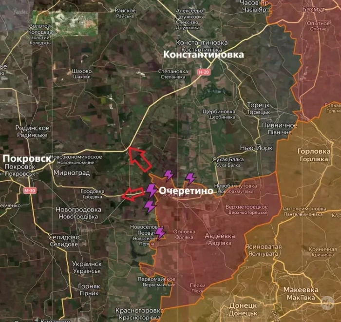 Довольно очевидные направления потенциального движения ВС РФ - на запад (в направлении Прогресса и Покровска), а также на северо-запад (в направлении Воздвиженки и трассы на Константиновку) пока что буксуют. Враг оказывает ожесточённое сопротивление, пишет PulsePen.