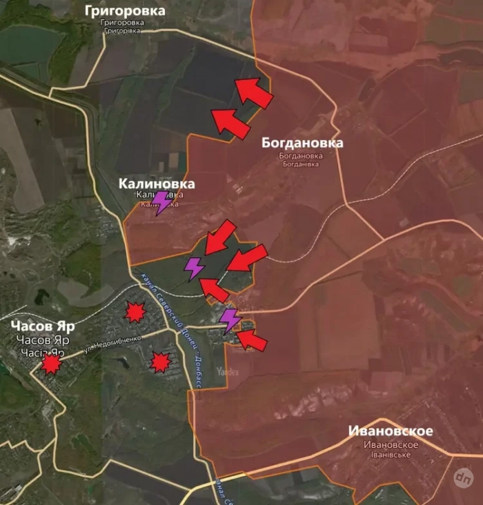 В микрорайоне Канал, что на восточных окраинах Часов Яра, продолжаются ожесточённое бои. По последним данным, враг остаётся лишь в районе высоток на юго-западе микрорайона. Помимо этого, подразделения Армии России серьёзно продвинулись в лесном массиве между Калиновкой и микрорайоном Канал.