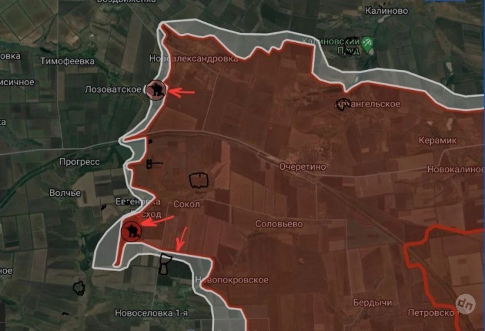 На Покровском направлении ВС РФ имеют тактические успехи у Новоалександровки, давят в направлении к Лозоватскому, также расширили контроль территории до ж/д полотна южнее Новоалександровки.