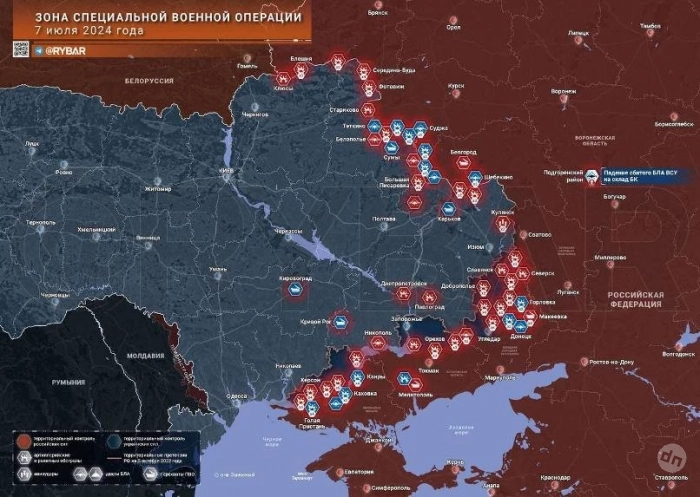 Карта боевых действий на Украине в зоне СВО по состоянию на 08.07.2024