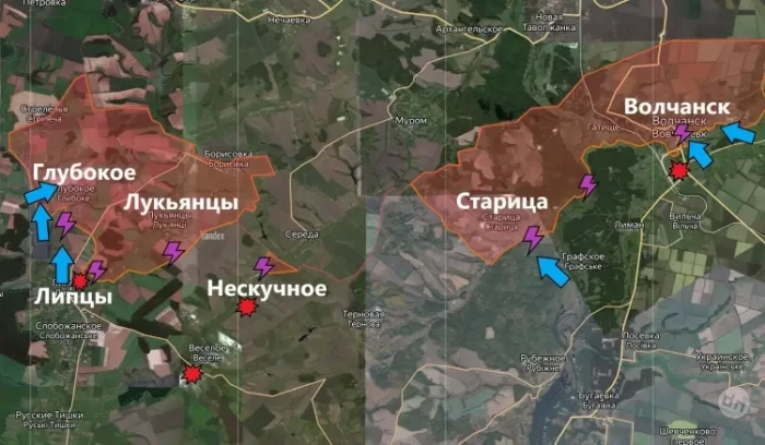 Утром 9 июля Telegram-канал «Северный ветер» сообщил, что на Волчанском направлении продолжаются ожесточенные бои в городе Волчанск. Общее продвижение российских войск на Волчанском направлении составило до 100 метров. Авторы канала подчеркнули, что в районе Волчанска ВСУ снизили интенсивность переброски подкрепления и сосредоточили усилия на попытках наведения насыпных переправ.