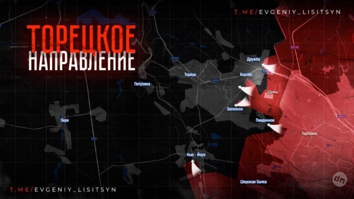 В микрорайоне Дружба российская армия начала наступление для выравнивания северного фланга после прорыва у станции Магдалиновка в направлении террикона шахты Северная. В микрорайоне Железное наши войска заняли шахту Южная и продвигаются в сторону железнодорожных путей по улицам Майская и Школьная. Целью является террикон шахты имени Артема, чтобы перерезать трассу между Нелеповкой и Забалкой, соединяющую Нью-Йорк с южной окраиной Торецка.