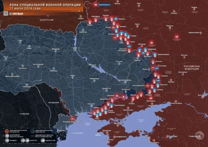 Новая карта боевых действий в зоне СВО на Украине сегодня, 18 июля 2024 года