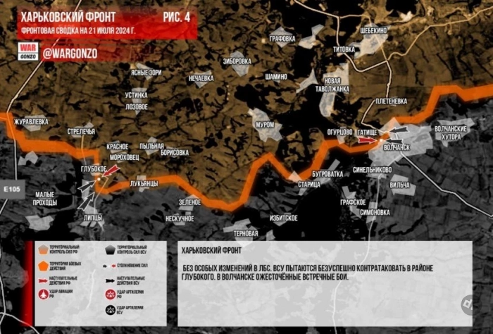 Обновлённая карта боевых действий на Украине по данным на 12:00 мск сегодня, 21.07.2024