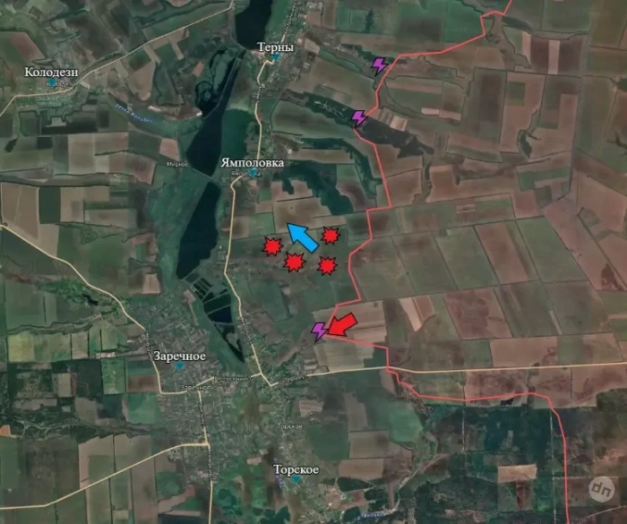 На Лиманском направлении восточнее Терн и Ямполовки продолжаются встречные бои. Положение дел здесь особо не меняется уже около года. Инициатива то на украинской, то на российской стороне. Примерно с месяц назад ВСУ отодвинули ВС РФ от Терн. С тех серьёзного продвижения в сторону населённого пункта у нас не было.