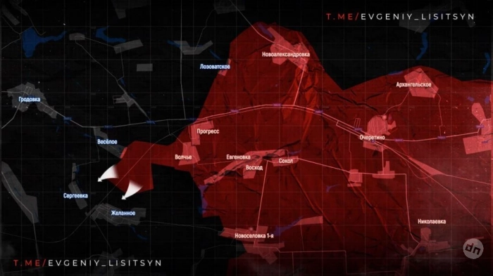 На Покровском направлении российская армия продолжает проламывать оборону противника, заставляя его отступать. Вчера пришли сообщения, что ВС РФ вышли к окраинам Желанного. Здесь российские силы двигаются вдоль ЖД полотна. Также наши бойцы продолжают атаковать село Веселое: несколько дней назад они подошли к нему с востока, а вчера - с северной части. Также фиксируется продвижение российской армии и чуть южнее. Здесь завершается зачистка Новоселовки Первой.