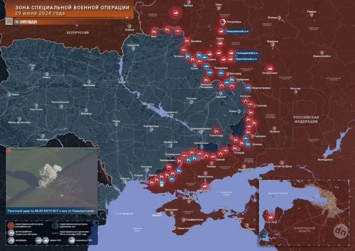 Новая карта боевых действий в зоне СВО на Украине сегодня, 30 июля 2024 года