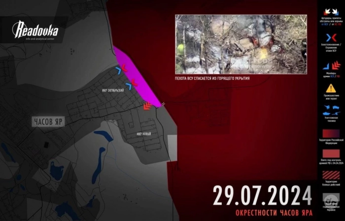 В Часовом Яре русским войскам удалось переправится через канал Северский Донец - Донбасс и закрепиться на восточных окраинах микрорайона Октябрьский по всей длине улицы Мариупольская. Наши штурмовики продвинулись вглубь города на 250 м. Форсировать канал при неподавленной обороне противника удалось гвардейцам из 98-й дивизии ВДВ, которые переправились на противоположный берег у урочища Орлова, пишет Telegram-канал Readovka.