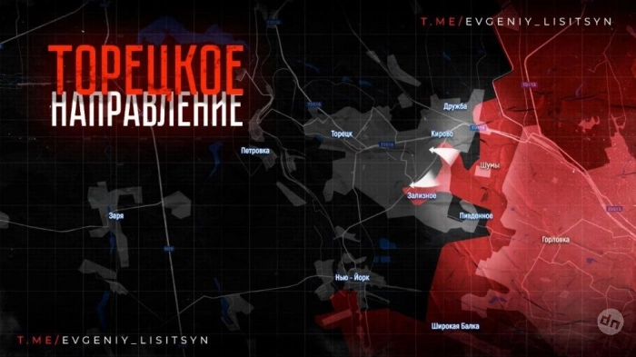 На Торецком направлении у российской армии есть успехи в Артемово и Северном. ВС РФ удалось взять под свой контроль здания на границе между селами. Также российские силы выбили врага из Дома культуры в Северном, который ВСУ использовали как один из свои форпостов. В Новгородском (Нью-Йорке) российские штурмовики продвигаются к центру населенного пункта. На текущий момент линия фронта проходит к югу от машиностроительного завода, но по некоторым данным ВС РФ смогли пройти еще дальше вплоть до окраины фенольного завода, пишет в Telegram-канале военкор Евгений Лисицын.