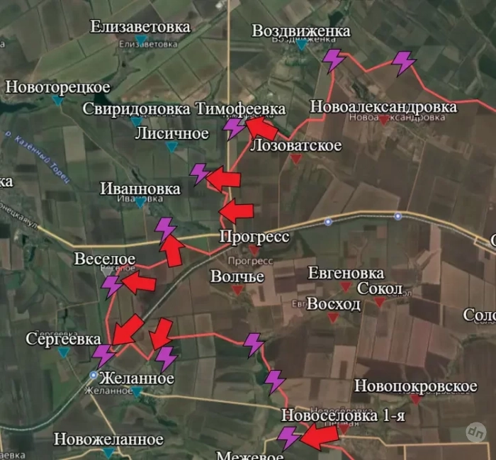 На Покровском направлении ВС РФ удалось выбить противника из центра поселка Веселое. Также наши войска продвирулись к северо-западной окраине Желанного и опорнику восточнее. Также российские силы все ближе к стратегическому маршруту снабжения ВСУ в Донбассе - трассе Покровск-Константиновка. После взятия села Лозоватское российским войскам до этой дороги осталось всего 6 км. Она служит важным маршрутом снабжения других удерживаемых украинской армией рубежей: города Часов Яр и Константиновка.