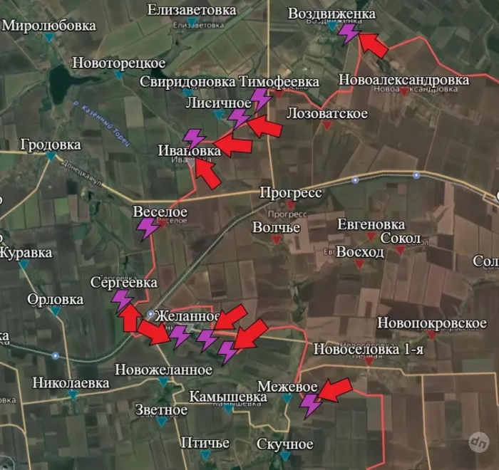 На Покровском направлении бои идут на подступах к Воздвиженке, где ВСУ уже несколько недель успешно держат оборону, Лисичному и Межевому. Продолжаются штурмы Ивановки, Сергеевки и Желанного. Наступательные действия ВС РФ в районе последнего носят окружающий характер - бойцы продвигаются не только с запада, но и с востока. Причём с востока основное движение идёт на юго-запад, то есть не в сам населённых пункт, а в сторону его южных окраин, информирует PulsePen.