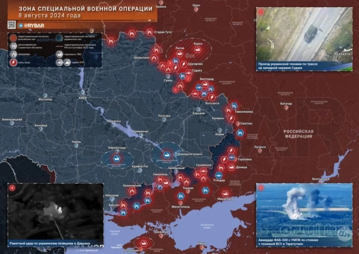 Новая карта боевых действий в зоне СВО на Украине от 9 августа 2024 года