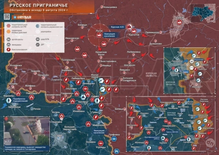 В Курской области ВСУ рассчитывали «блицкригом» прорваться к АЭС в Курчатове сразу по нескольким трассам. Речь о дороге от Суджи на Курчатов и о перекрестке у Коренево, от которого можно доехать как до Рыльска, так и до Льгова. Пользуясь отсутствием линии фронта, ВСУ мобильными группами старались установить контроль над ключевыми дорогами и развилками для введения в бой следующего эшелона войск.