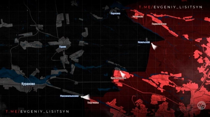 На Кураховском направлении российская армия дозачистила промзону и оформила окончательное освобождение Невельского. В соседней Красногоровке нашим бойцам пока не удается до конца дожать противника и полностью занять город. При этом почти 95 процентов территории Красногоровки - за ВС РФ.