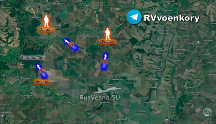 С юга враг атаковал в лесном массиве у Снагости-Краснооктябрьского, смог занять позиции в лесу.