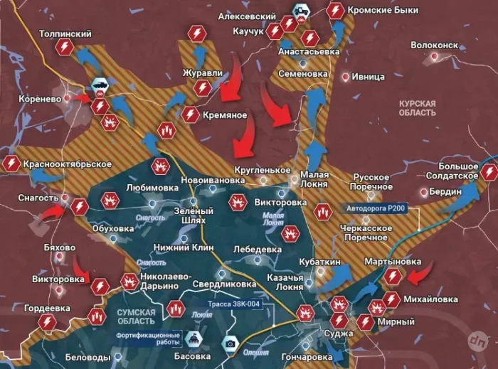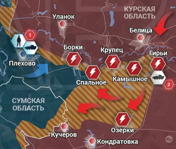 На северном участке идут бои близ населённых пунктом Каучук и Кромские Быки. Однако доподлинно неизвестно, со стороны противника орудуют ДРГ или более серьёзные по численности группы, сообщает PulsePen.