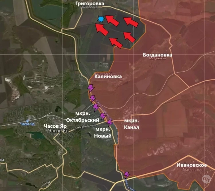 Ситуация в Часов Яре серьёзных изменений не претерпела. ВС РФ пытаются штурмовать микрорайон Октябрьский, но враг оказывает ожесточённое сопротивление. Продвинуться вперёд пока что не удаётся.