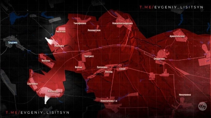 ВС РФ выбили боевиков ВСУ из населенного пункта Желанное и продвинулись на участке 8,3 на 2,5 км. Ранее сообщалось об установлении контроля над населенными пунктами Ивановка, Свиридоновка, Лисичное. Ведутся боевые действия в Гродовке.