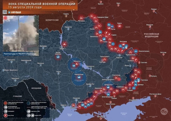 Новая карта боевых действий в зоне СВО на Украине от 16.08.2024