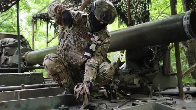 Минобороны России демонстрирует боевую работу на Ореховском направлении в Запорожской области расчета 152-мм гаубицы «Гиацинт-Б» 42-ой гвардейской мотострелковой дивизии из состава группировки войск «Днепр».