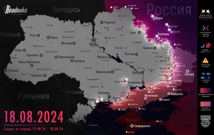 Новая карта боевых действий в зоне СВО на Украине от 19.08.2024