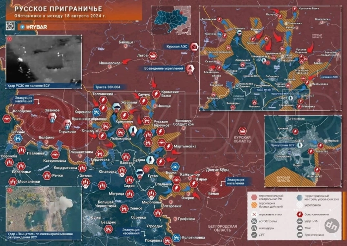 В Кореневском районе продолжаются ожесточённые бои. К исходу 18 августа появилась информация о присутствии украинских формирований в Апанасовке. Некоторые источники сообщают, что враг уже выбит из населённого пункта.
