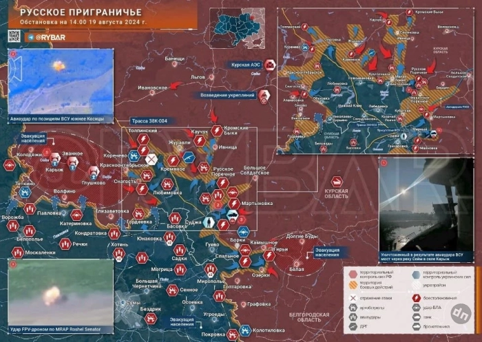 Уточнённая карта боевых действий в Курской области на 19 августа 2024: обзор свежих событий