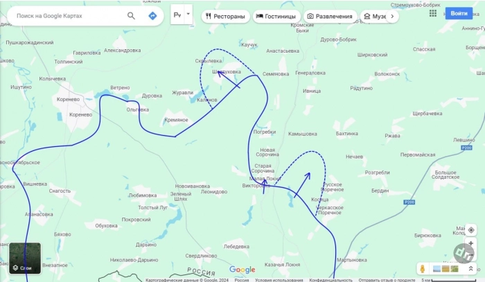 Карта боевых действий в Курской области по данным на сегодня 22.08.2024