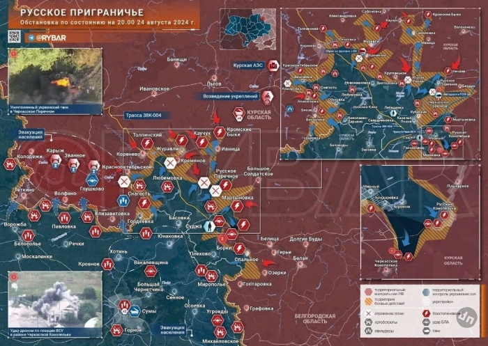Новая карта боевых действий в зоне СВО на Украине от 25.08.2024