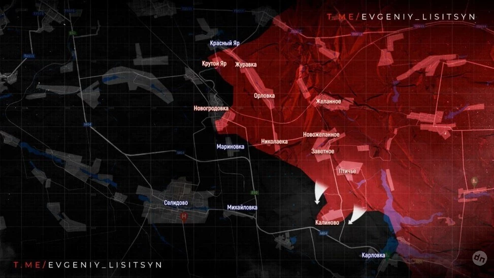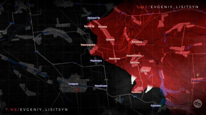 На Покровском направлении наши парни выбили боевиков ВСУ из Калиново. Прорыв этой линии выводит ВС РФ в тыл гарнизону ВСУ в Карловке. Западнее российская армия продвигается в Гродовке. В Новогродовке по данным с мест под контролем армии России уже до 70% города и серьезных укреплений и больших сил у противника здесь нет.