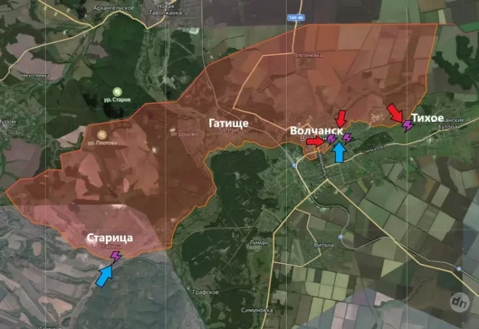 На восточном участке бои идут близ Старицы и в Волчанске. В последнем обстановка остаётся стабильно напряженной. ВС РФ воздерживаются от ведения активных наступательных действий и сосредоточены на выявлении и поражении позиций противника в городской застройке.