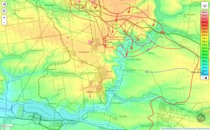 Также идут атаки непосредственно н.п. Желанное Первое, где противник, пытается нас сдержать. Прорыв здесь его обороны может обернуться для частей ВСУ восточнее настоящей катастрофой.
