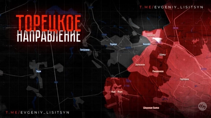 На Торецком направлении направлении освобожден поселок Дружба. Это позволит усилить давление на Торецк с северного фланга. В самом городе продолжаются тяжёлые бои вокруг местной исправленной колонии.