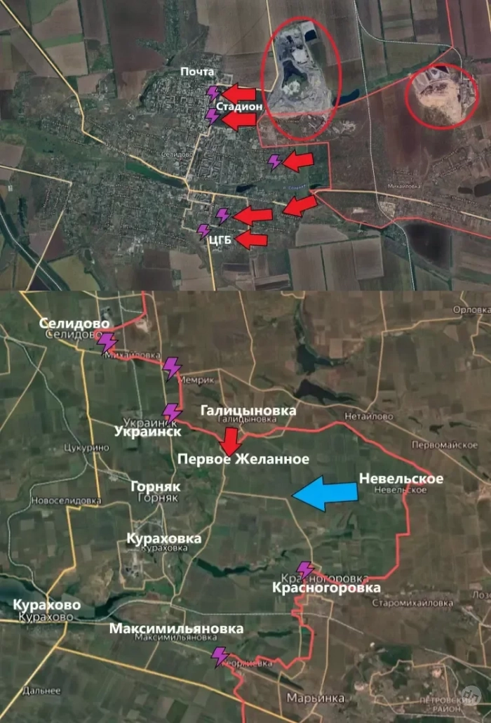 На Селидовском направлении по ситуации в самом Селидово информация очень сильно разнится. Известно, что в городе идут ожесточённые бои, но вот кто какие позиции занимает не ясно.
