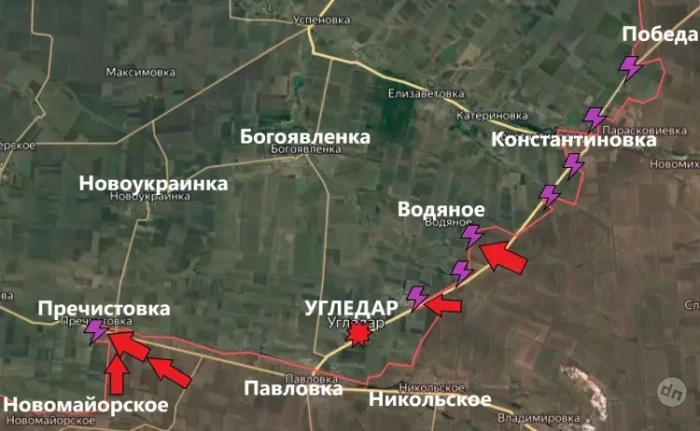 На Угледарском направлении в Константиновке ВС РФ закрепляются на занятых после завершения зачистки рубежах. Дальнейшее продвижение здесь позволит несколько облегчить наступление в районе Водяного и Победы, где у последней уже несколько месяцев ВС РФ ведут тяжелые бои.