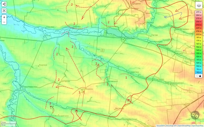 В Кураховской наступательной операции всё определяется рельефом и реками. На самом деле бои за Угледар и соответственно освобождение города, как я понимаю, это не цель всей операции. А только первая фаза большого наступления с целью разгрома крупной группировки ВСУ на западном Донбассе.