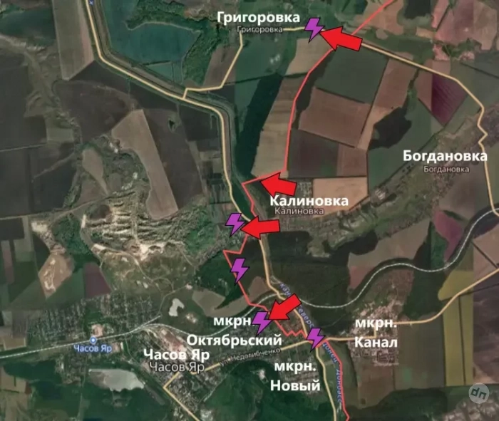 На Константиновском направлении продолжаются ожесточённые бои в восточной части Григоровки, в западной части Калиновки, а также на востоке микрорайона Канала в Часов Яре.