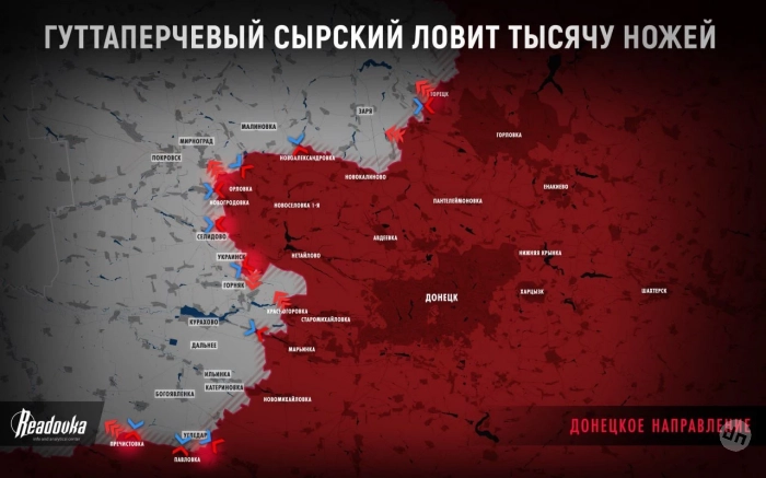 На Покровском направлении МО сообщило об освобождении Калиново, что на подступах к Селидово. ВС РФ бьют по мостам, через которые ВСУ снабжали группировку в Селидово, еще минимум один мост разрушен. Очень тяжелые бои идут у Украинска, куда, по данным с мест, ВСУ подтянули свои стратегические резервы. ВС РФ закрепили успех вчерашнего продвижения между городами Украинск и Горняк, достигнув ж/д от Селидово до Горняка. Сегодня, зайдя в Украинск с юга и в Горняк с севера, наши продолжают атаки. Выше по линии фронта ВС РФ мощно атакуют в центре Гродовки, продвинулись примерно на 1 км. Движения в сторону Мирнограда или Покровска (Красноармейска) не наблюдается.