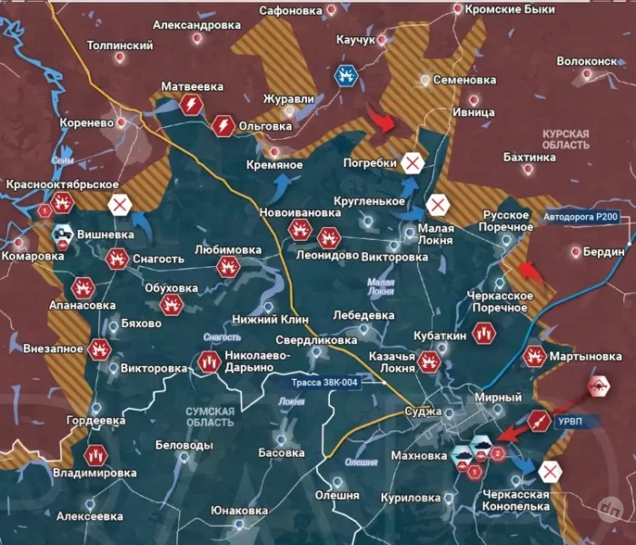 В Суджанском районе также идут бои. Погребки и Малая Локня находятся в серой зоне, там идут боестолкновения, а ВКС РФ поражают скопления живой силы противника в ближайших лесополосах. Подразделения ВС РФ атаковали в районе Погребков и между Русским Поречным и Черкасским Поречным. Исходы этих атак неизвестны, пишет PulsePen.